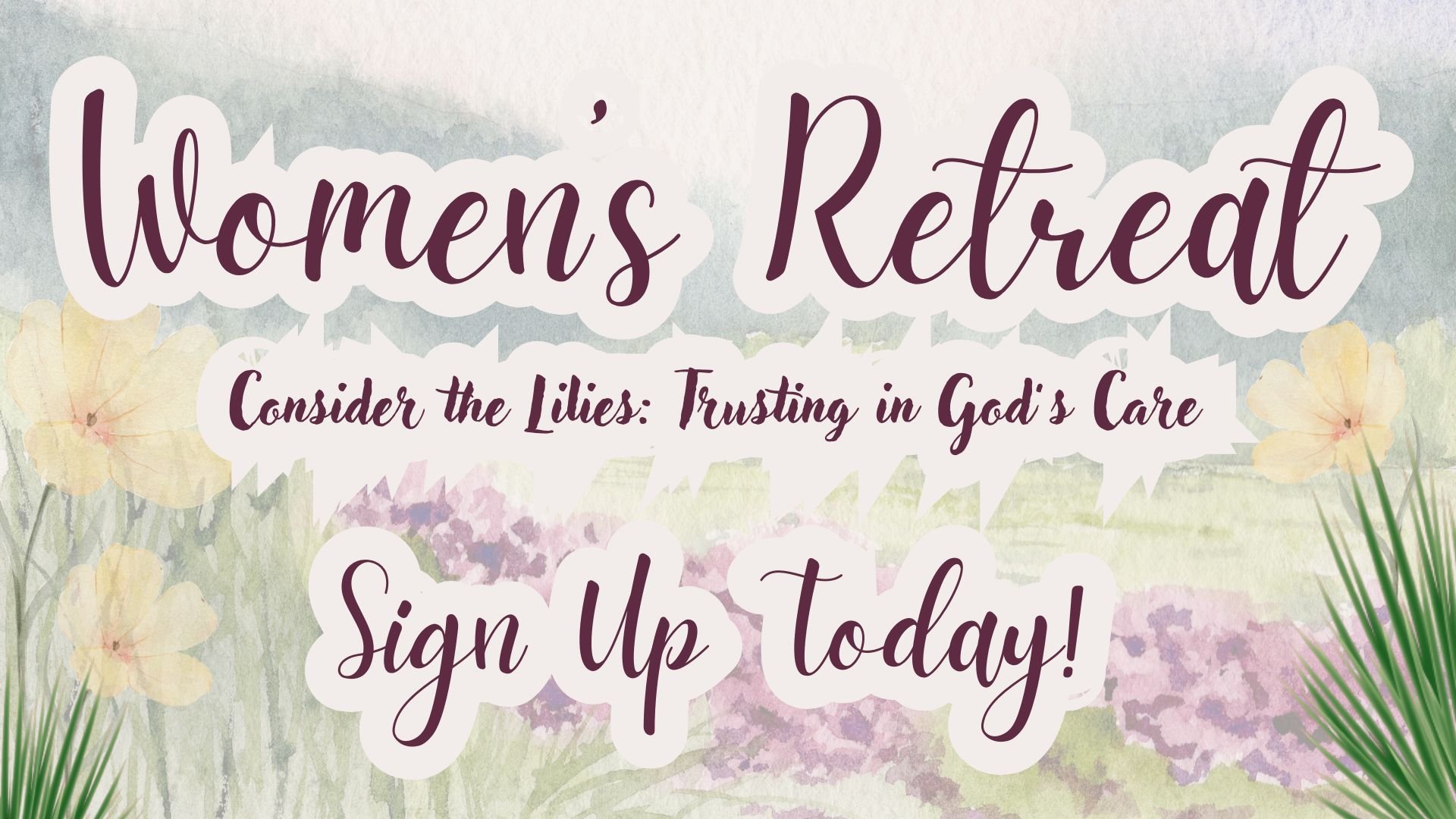 Join the women of CrossWay for our annual retreat on Friday, April 24 & Saturday, April 25. Theme: Consider the Lilies: Trusting in God's Care. Sign up today! More details and registration can be found here. Sign up by April 3rd.